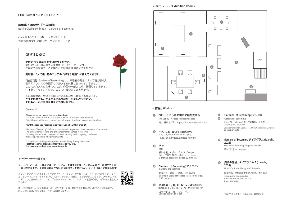 In the Lobby, each visitor receives a paper rose. It is a symbol of replicable information, and on its reverse are written fragments of Ibaraki citizens’ voices. A polished surface on one side, instability and tremor on the other.