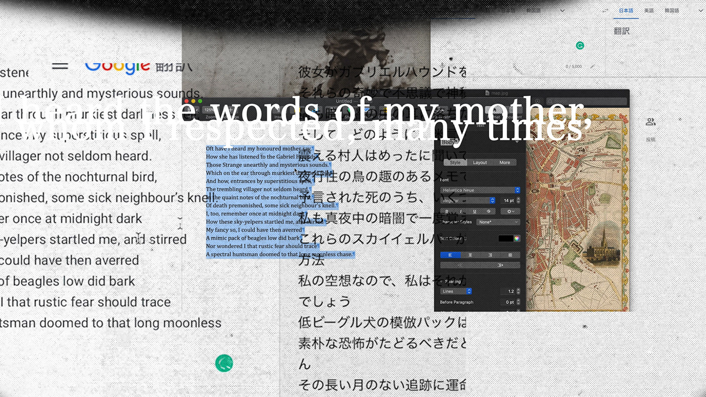 オンライン翻訳エンジン/サイトを通じて、異なる言語間で絶え間なく交わされる言葉は、言葉の意味や響きを乱し、真の相互理解はどこで行われるのかを考える機会を与えてくれるのです。